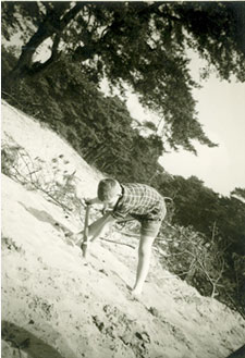 Looking down at the lens on the box, I was fascinated by the image in it; I took pictures of my friends (and the nurse...). That fascination never went away and in that same summer it got company from an angle that I didn't know before. On one occasion a man passed by, saw me with my camera and proposed to make a picture of me. 'I'll tilt the camera a bit, so that on the picture it will look like you're on a slope', he said. And so he did; I still have that picture.